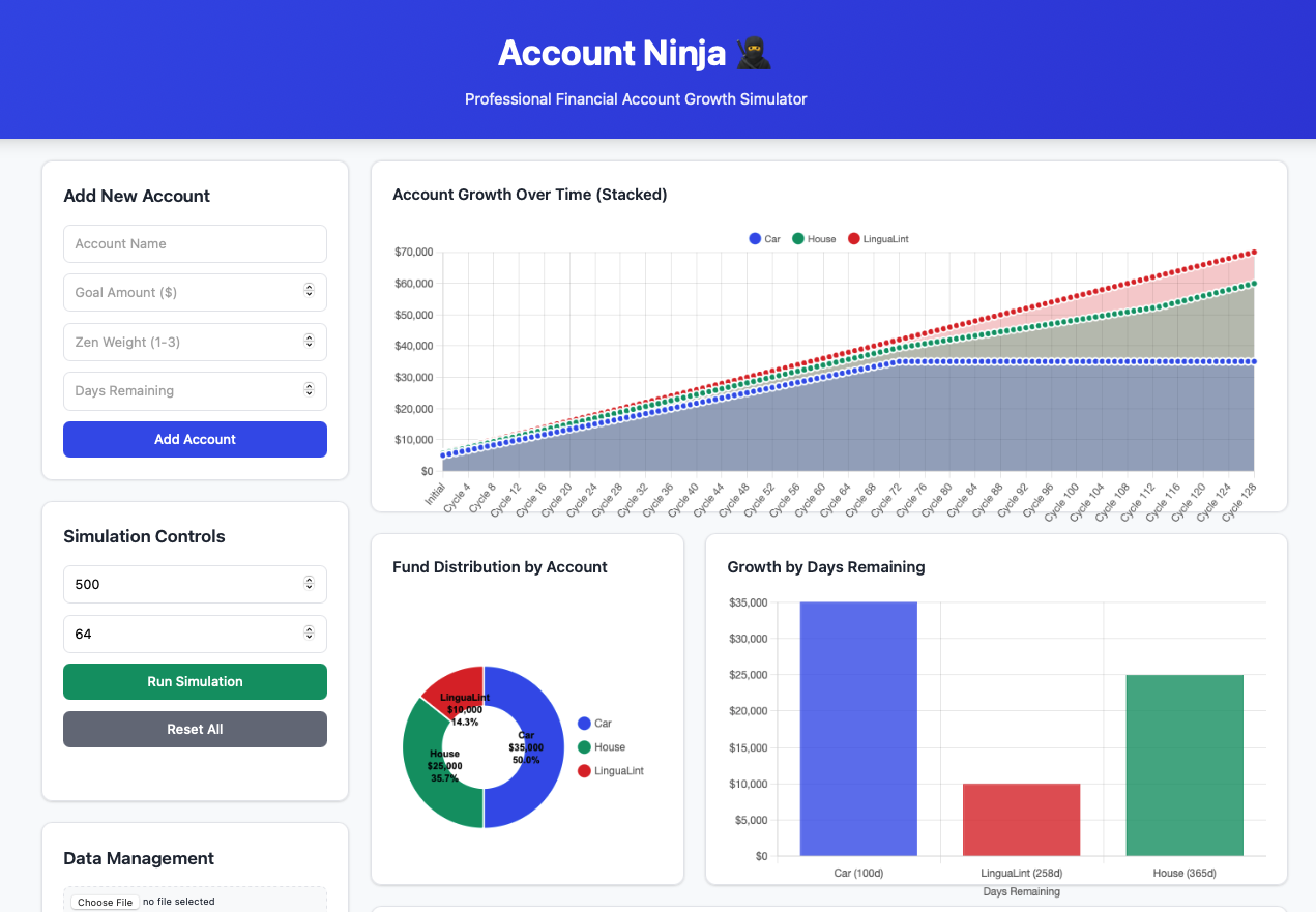 Account Ninja is designed to support structured capital allocation strategies. The framework below demonstrates how to balance Social Capital, Scope Capital, and Material Capital investments using priority-based allocation and zen weighting.